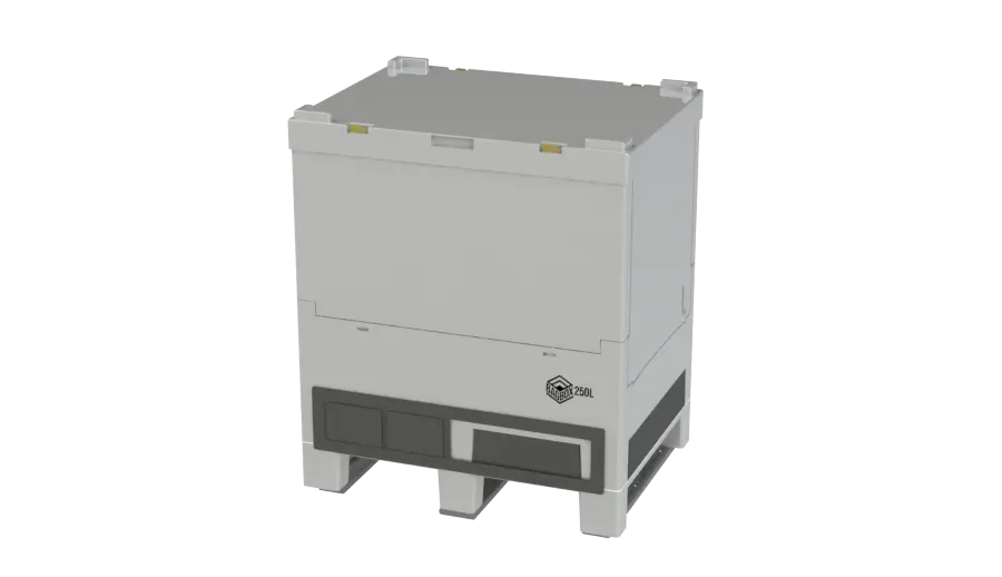 The BagBox 250L transport tote is built for biopharma operations that demand secure, hygienic movement of moderate fluid volumes between clean environments or facilities.